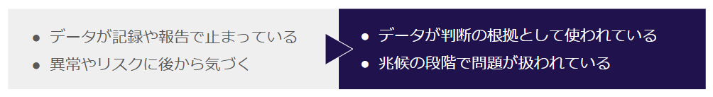 本当に意味のあるデータは、数字を集めるだけでは機能しません。データとは、品質やリスクをどう判断するかという共通の視点を、チームや組織の中で揃えるためのものです。判断に活用されないデータは、異常やリスクを見逃し、認識のズレや勘に頼った対応を生みやすくなります。
