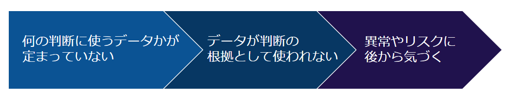 - 小さな異常やリスクの兆候が見えず、問題が大きくなってから表面化している